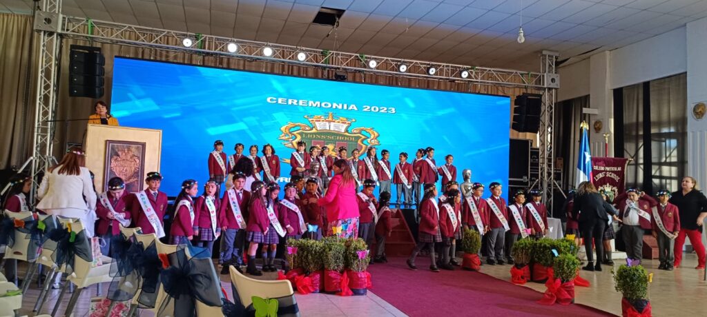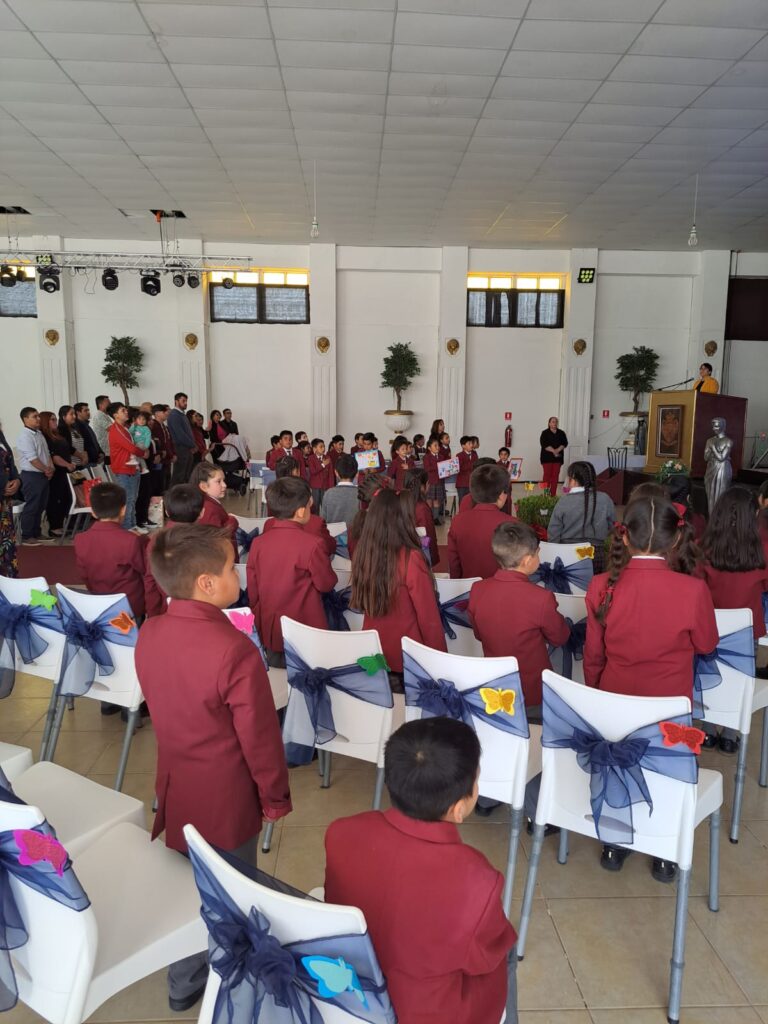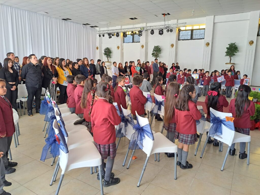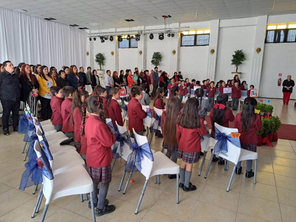 Nuestro pequeños estudiantes de los cursos 1º básico A Marcela Paz y 1º Básico B Roberto Matta, nos deleitaron leyendo el cuento «El monstruo de colores», cuya ceremonia culminó además, con una hermosa canción interpretada por ellos.