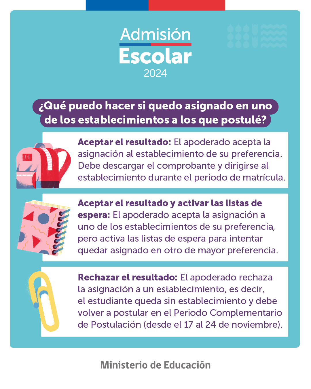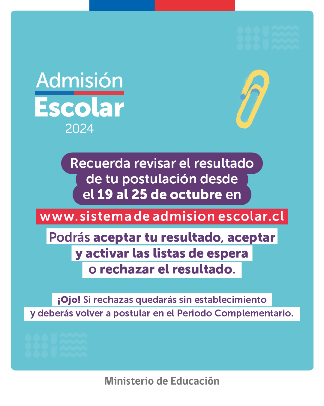 Mineduc informó que están disponibles los resultados de postulación para la Admisión Escolar 2024