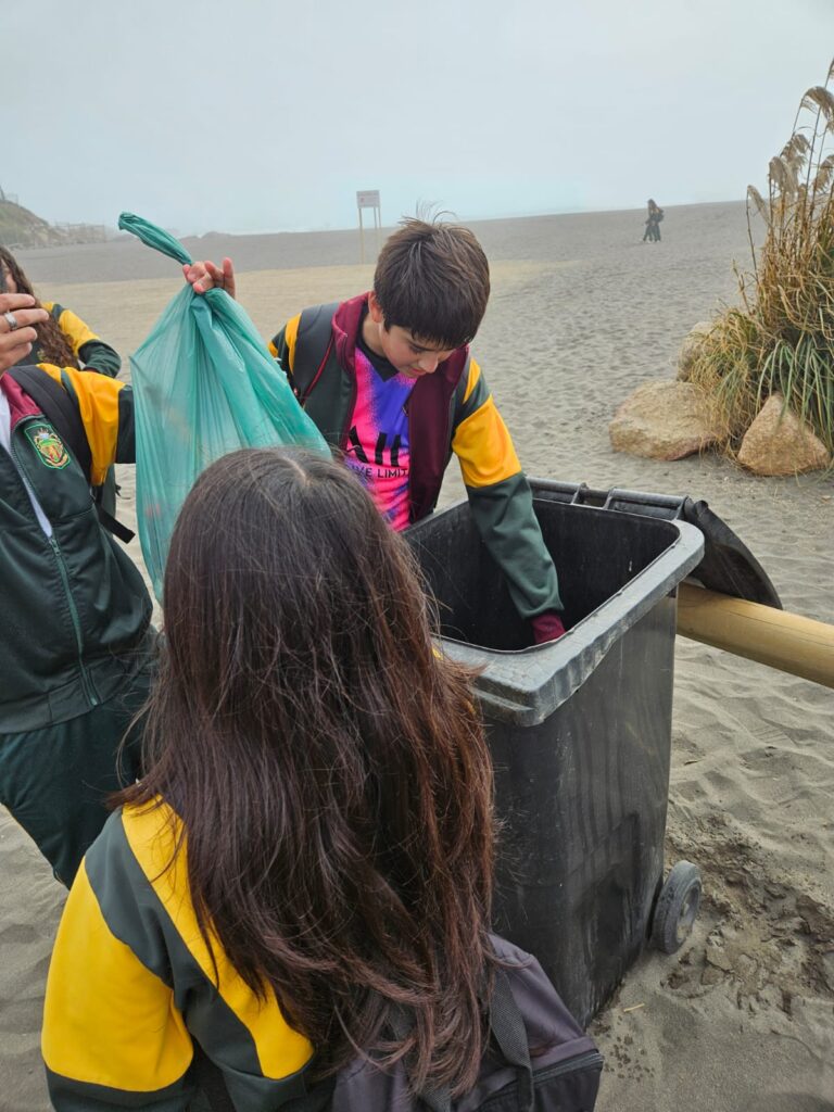 Finalmente, se organizaron en cuadrillas, equipados con guantes y bolsas de basura, para llevar a cabo una recolección de residuos en la zona costera. Gracias a su compromiso y entusiasmo, lograron recolectar una gran cantidad de desechos, los cuales fueron correctamente depositados en los contenedores correspondientes.