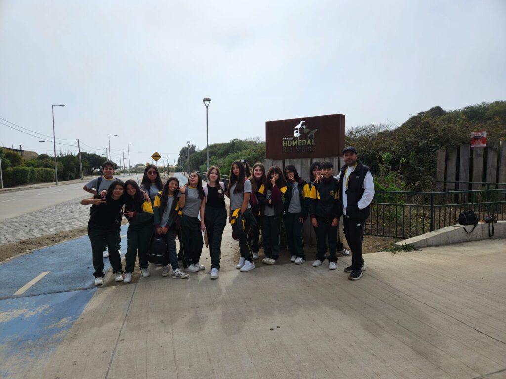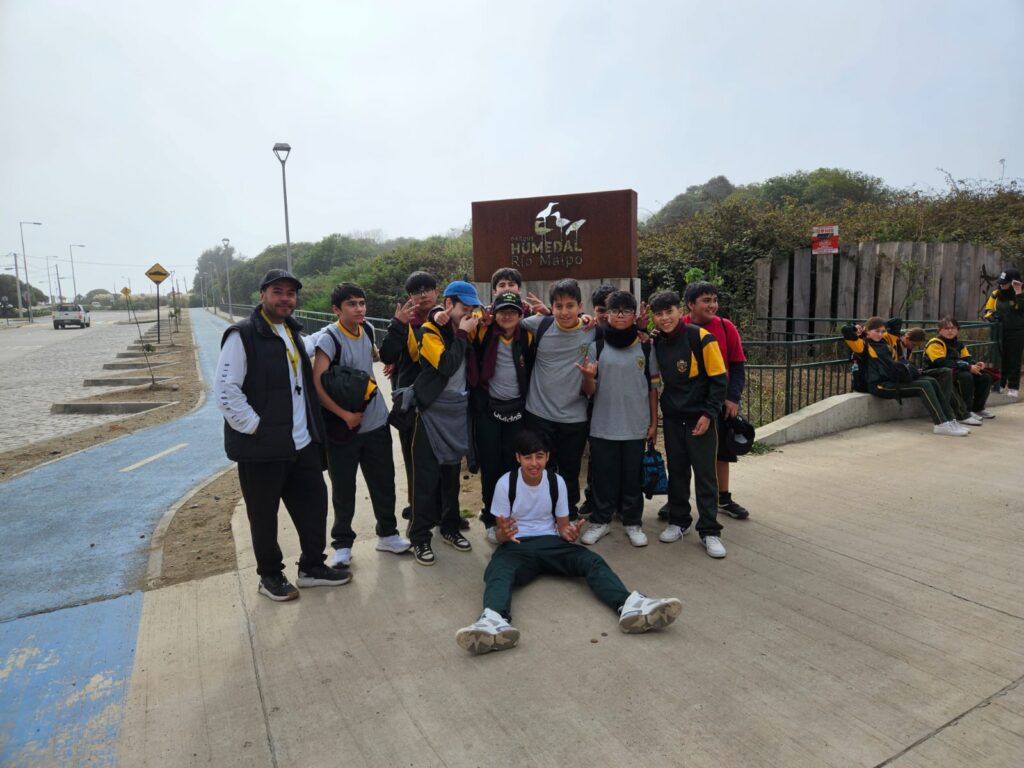 Como parte de nuestro compromiso con una educación integral y sostenible, los estudiantes del 8º Básico A, acompañados por los docentes Matías Ortega, René Cañete y la trabajadora social Paulina Meza, participaron en una salida pedagógica al Humedal Río Maipo, donde realizaron una serie de actividades formativas y recreativas con el foco puesto en el cuidado del medio ambiente.