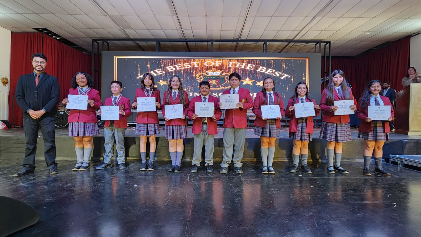 Además, reconocemos a quienes reciben las distinciones de Mejor de Inglés y Mejor Compañero o Compañera, premios que reflejan no solo el rendimiento académico, sino también los valores y la convivencia que promovemos en nuestra comunidad educativa.