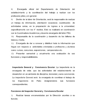 Inspectoría General y Convivencia Escolar: La Inspectoría es la
