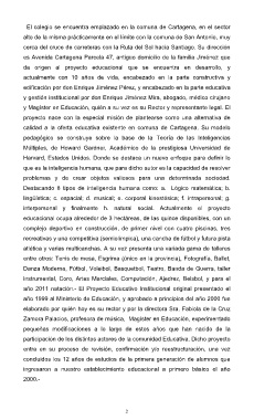 participación de los distintos actores de la comunidad Educativa. Dicho proyecto