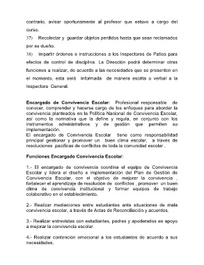 El encargado de Convivencia Escolar tiene como responsabilidad