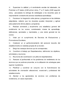 4) Supervisar la calidad y el rendimiento escolar del alumnado, de