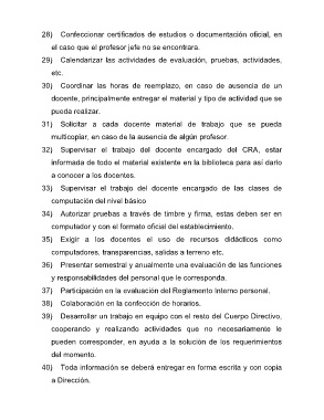 32) Supervisar el trabajo del docente encargado del CRA, estar