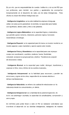 incentiven el desarrollo de las distintas inteligencias, trabajando de manera